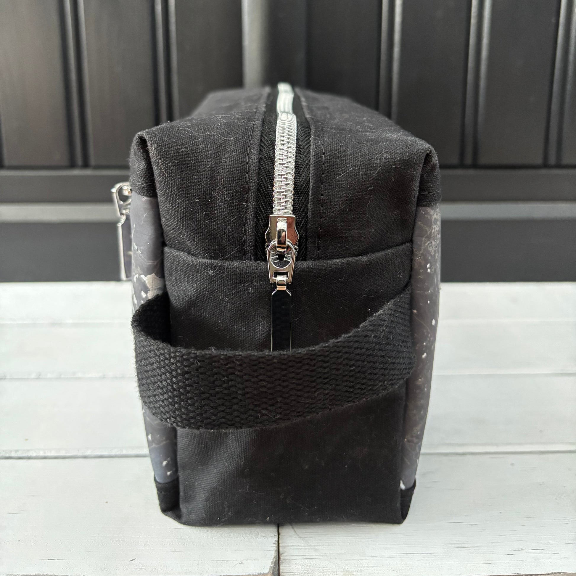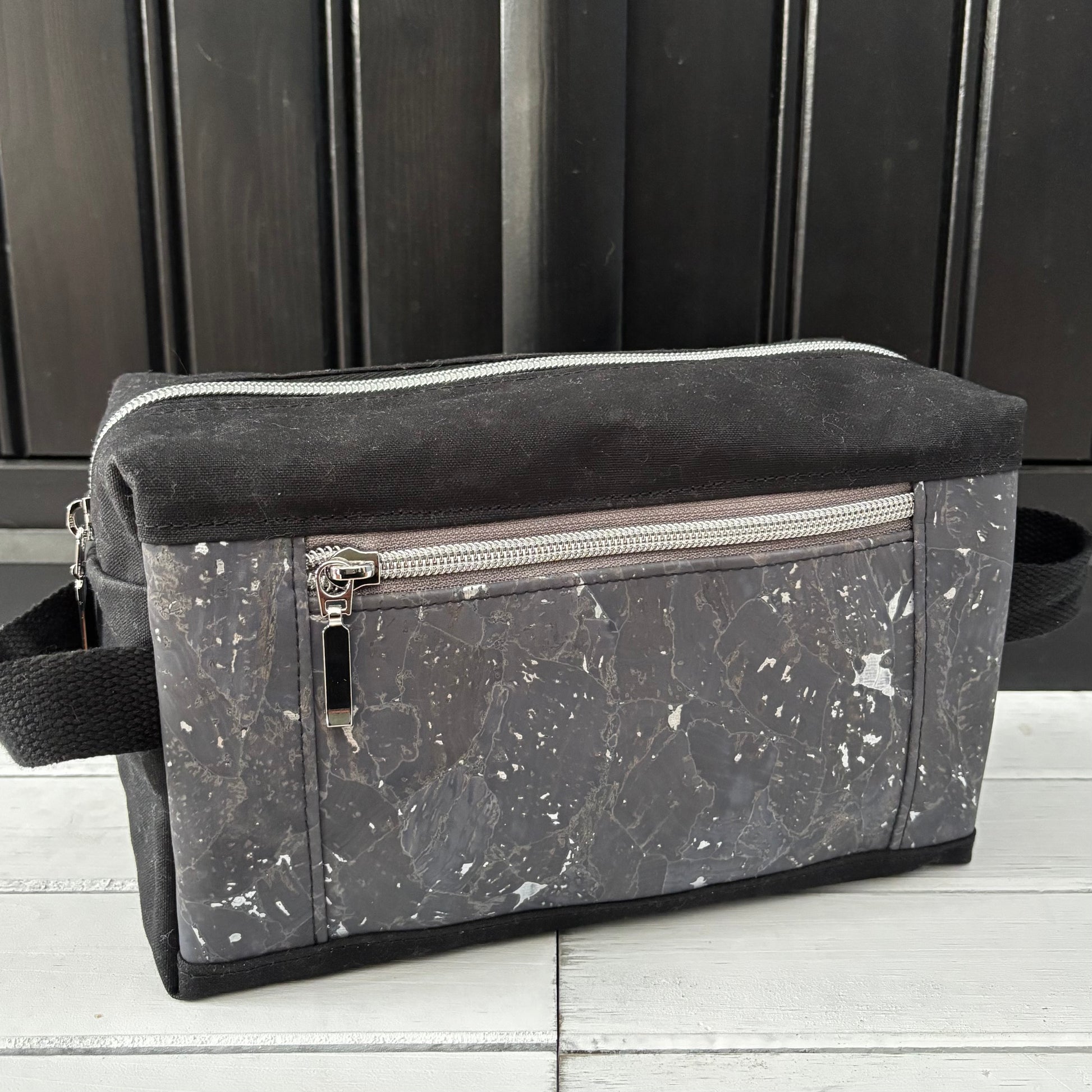 The Isabella Pouch is a great size for travel. This toiletry bag has exterior pockets and a roomy interior. The exterior is made of cork and waxed canvas and the the interior is waterproof canvas. Why cork? It's an eco-friendly alternative to leather and comes from a sustainable source! Spot clean only.