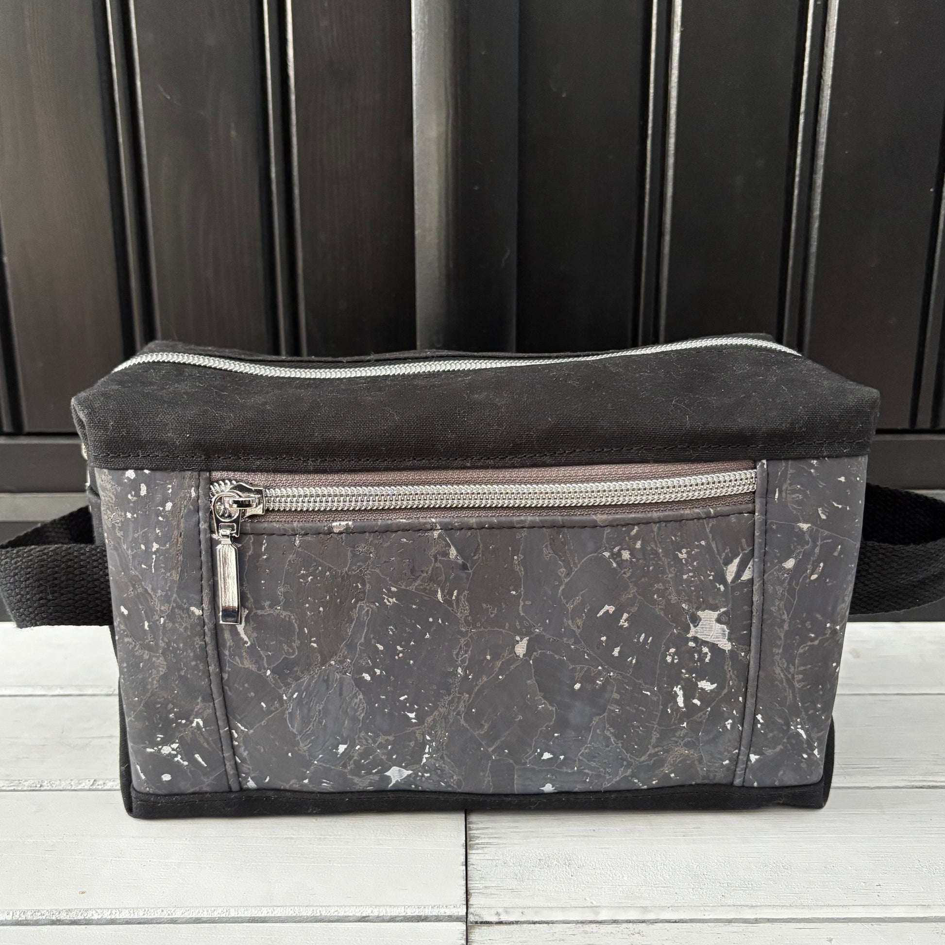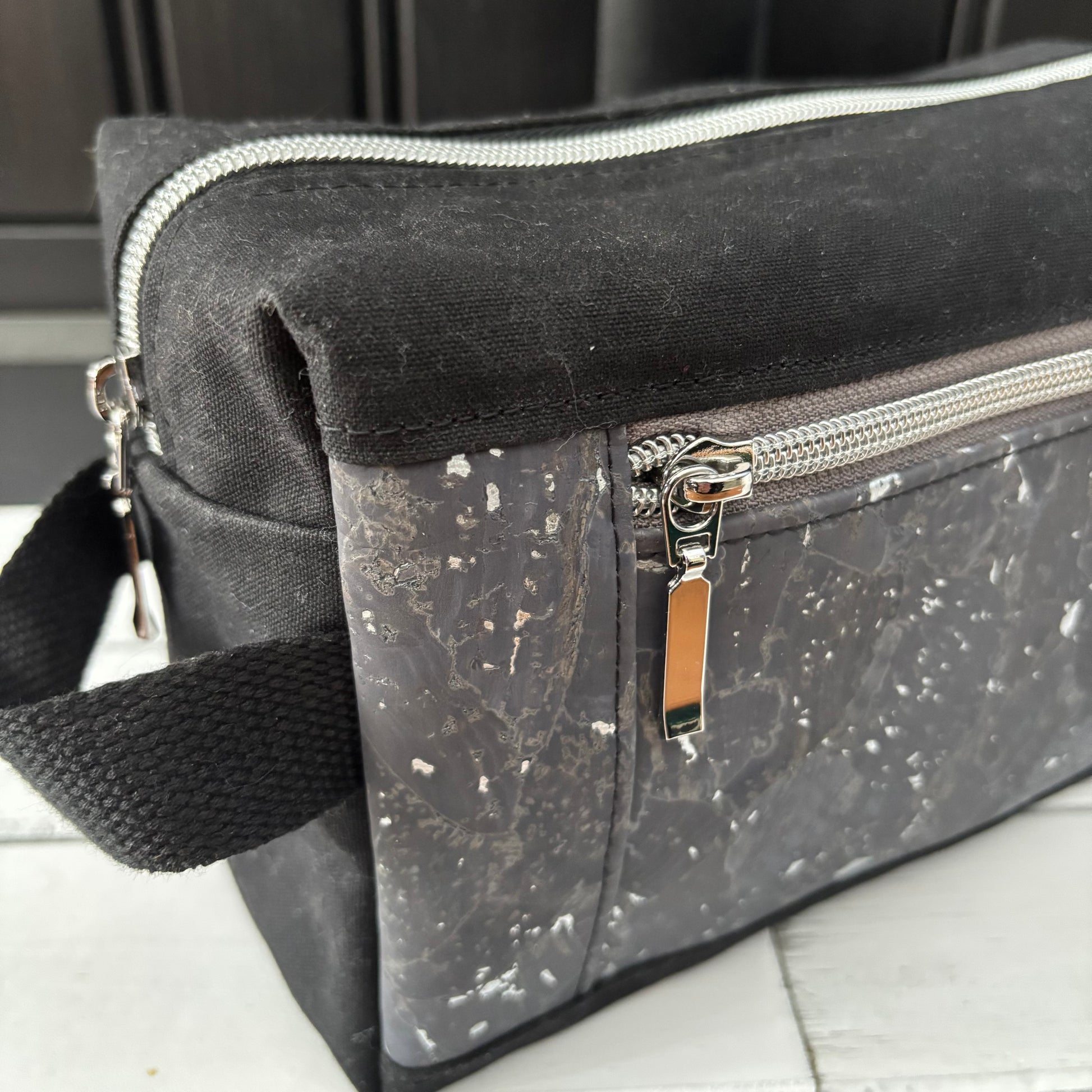Isabella Pouch - Gilded Grey Cork and Black Waxed Canvas version 1