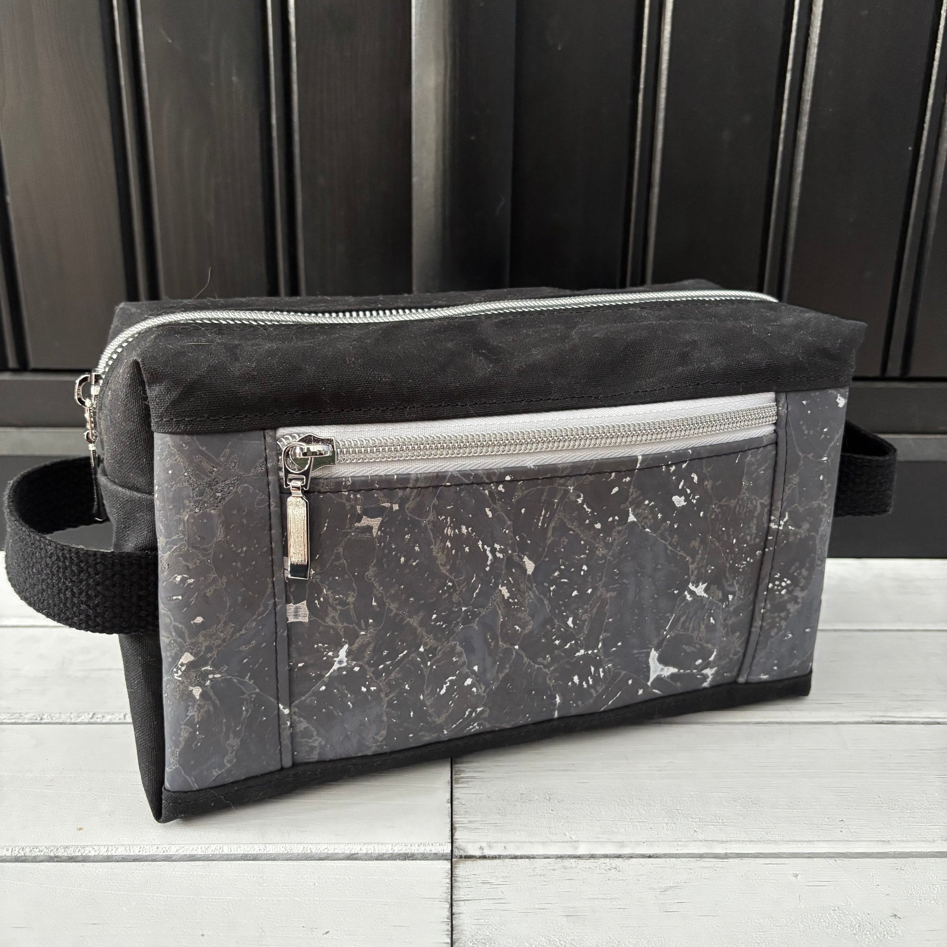 The Isabella Pouch is a great size for travel. This toiletry bag has exterior pockets and a roomy interior. The exterior is made of cork and waxed canvas and the the interior is waterproof canvas. Why cork? It's an eco-friendly alternative to leather and comes from a sustainable source! Spot clean only.