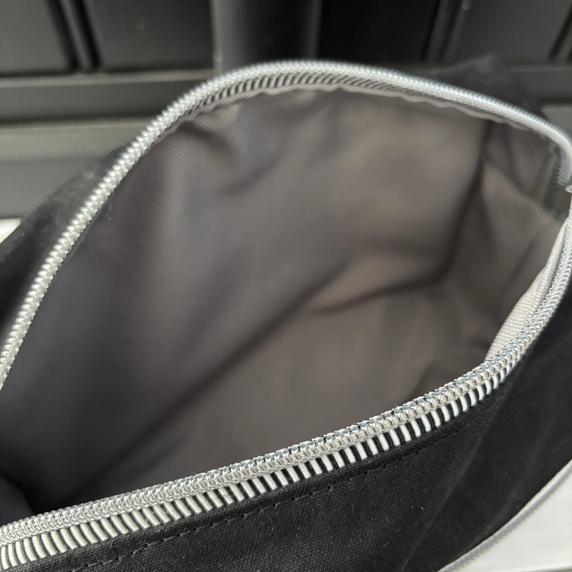 - Made with gilded grey cork and black waxed canvas on the exterior