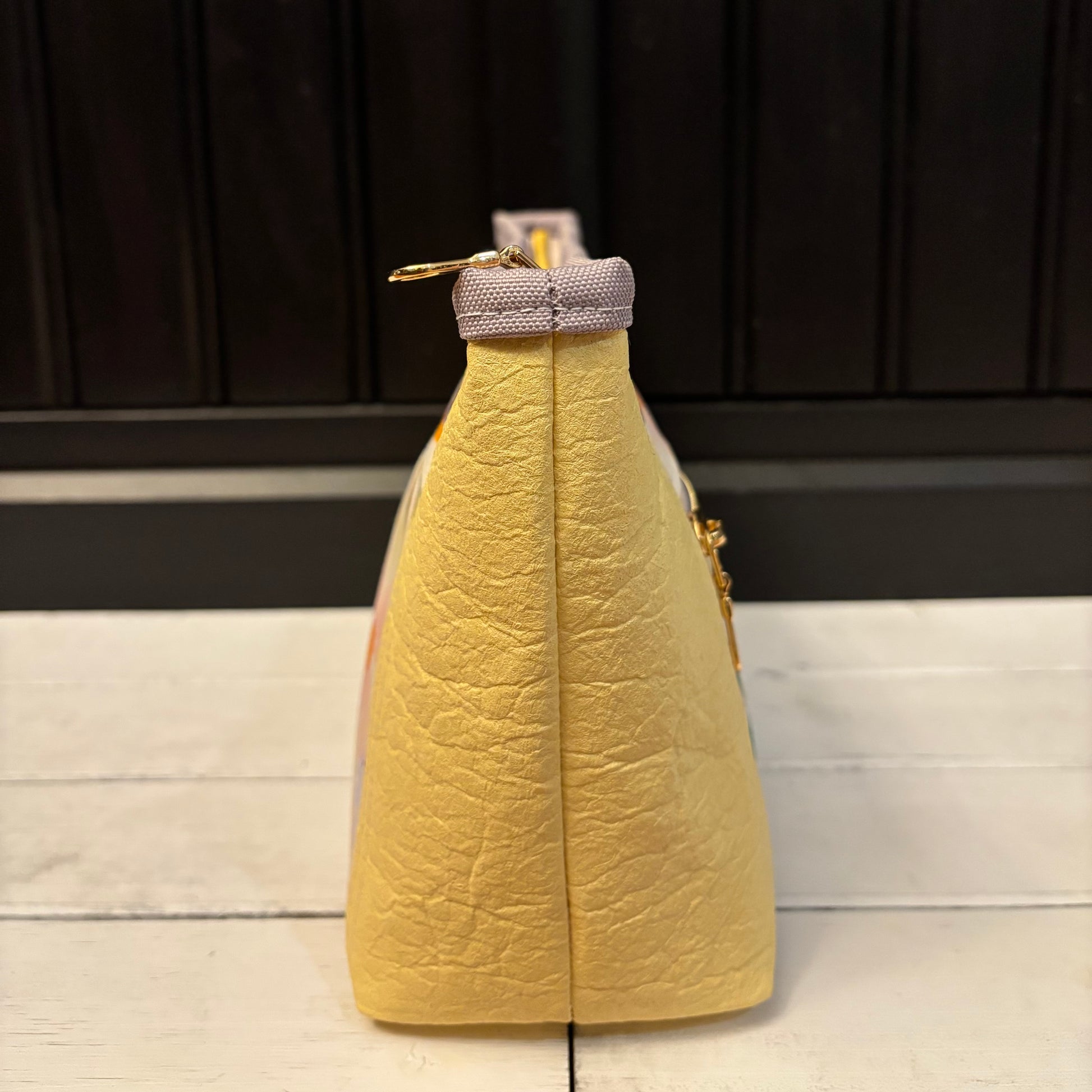 Oleander Pouch - Yellow Piñatex and Birds Waterproof Canvas