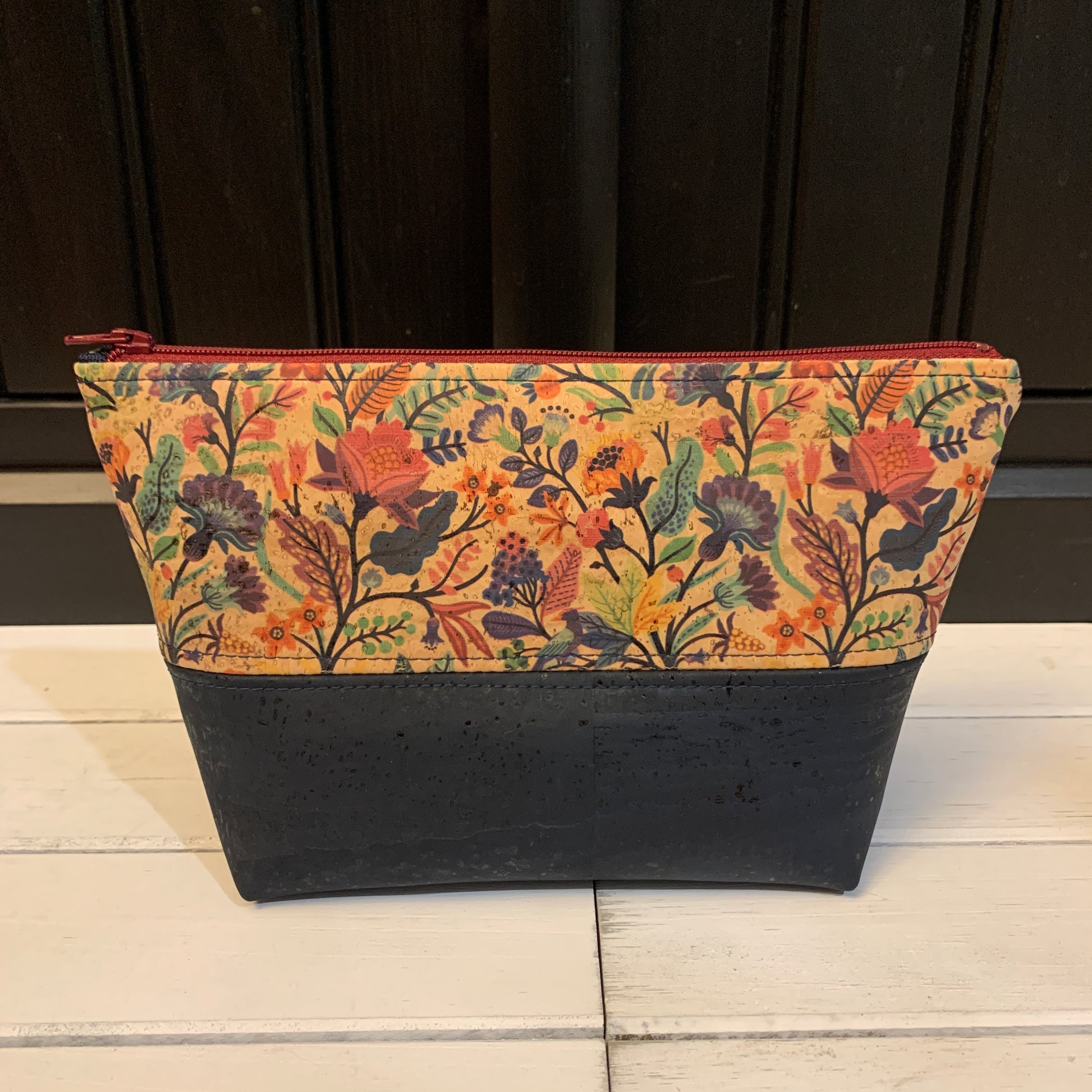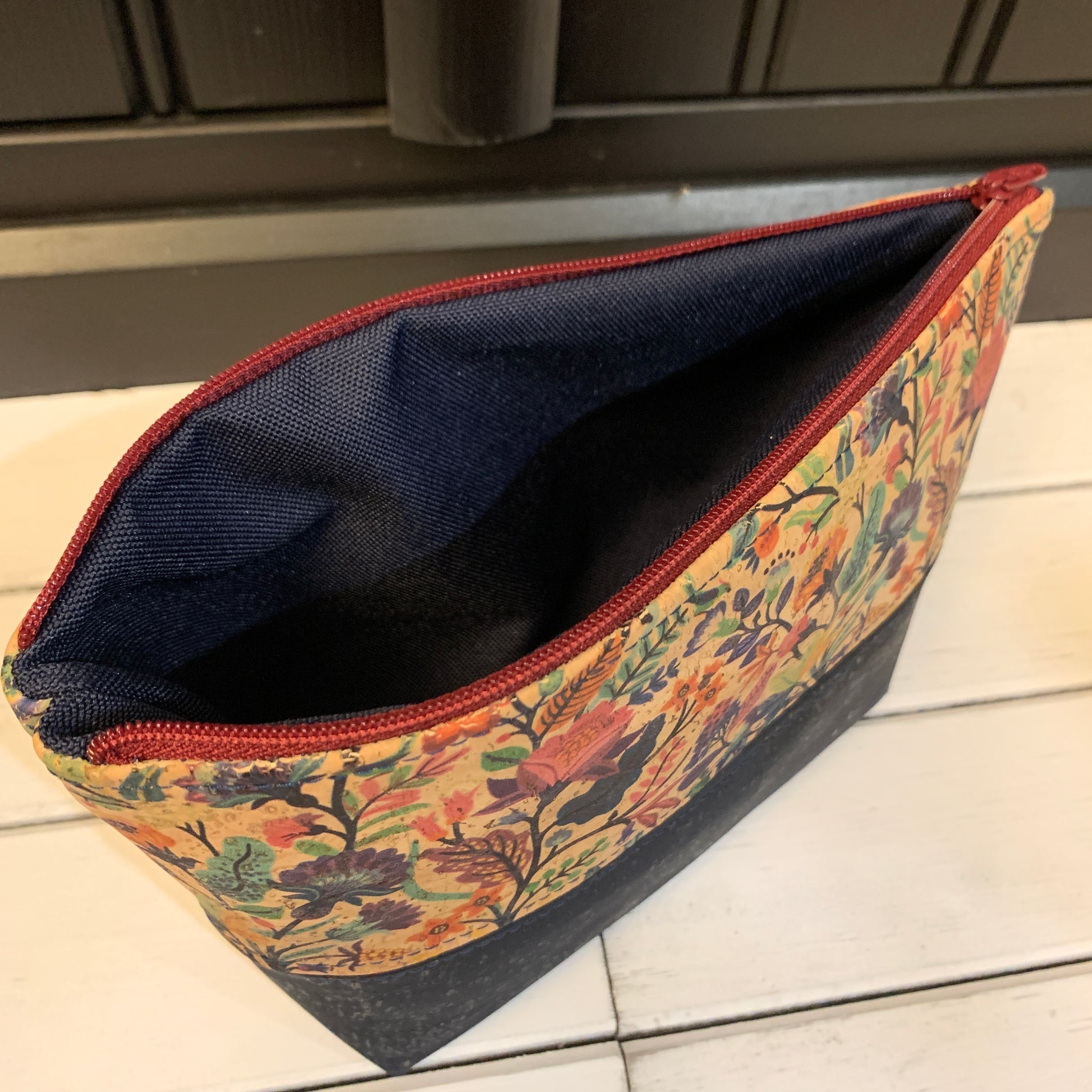 This single compartment zipper pouch has a cork exterior and waterproof canvas interior, which makes it a great option for toiletries or cosmetics!
