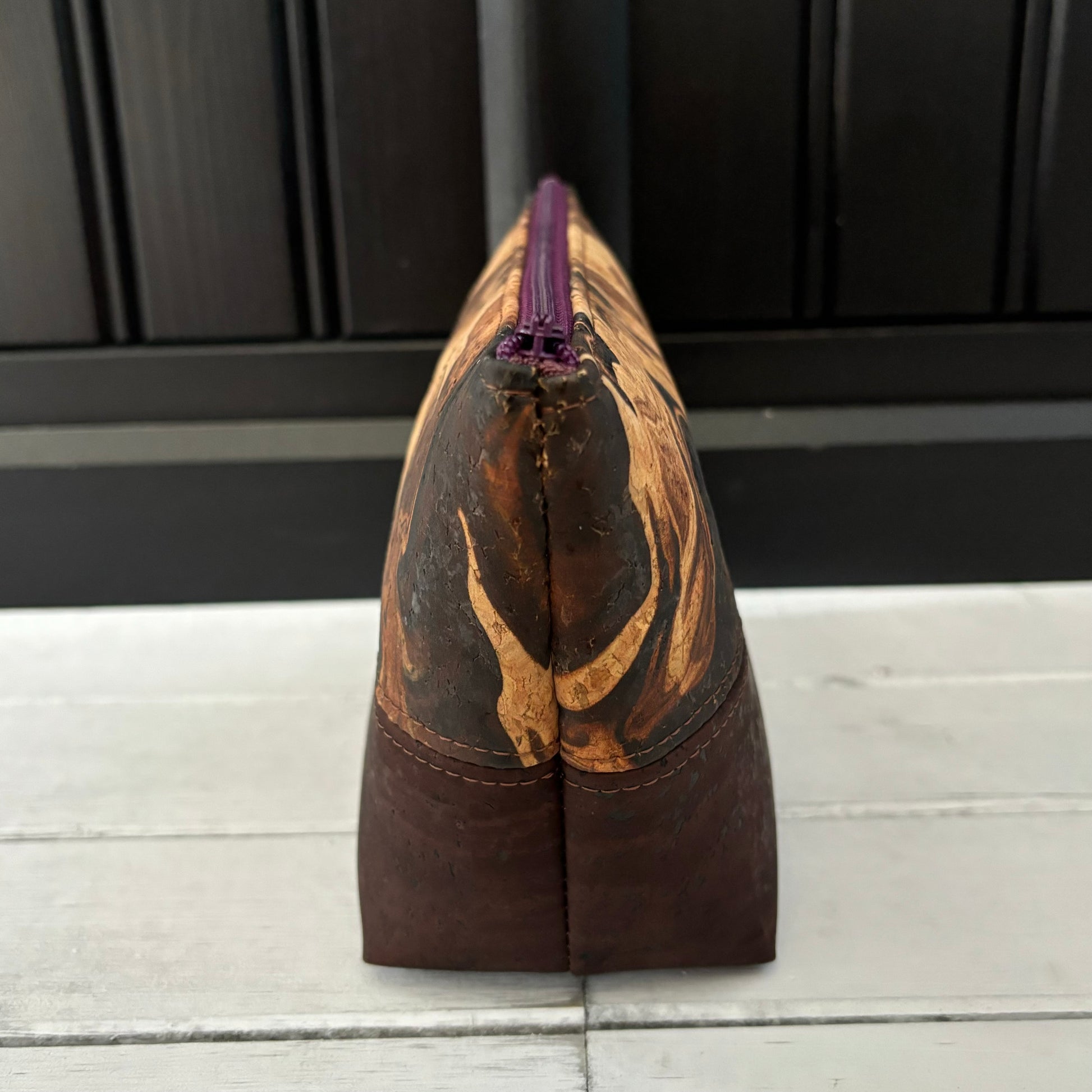 Open Wide Pouch - Small - Marble and Chocolate Brown Cork