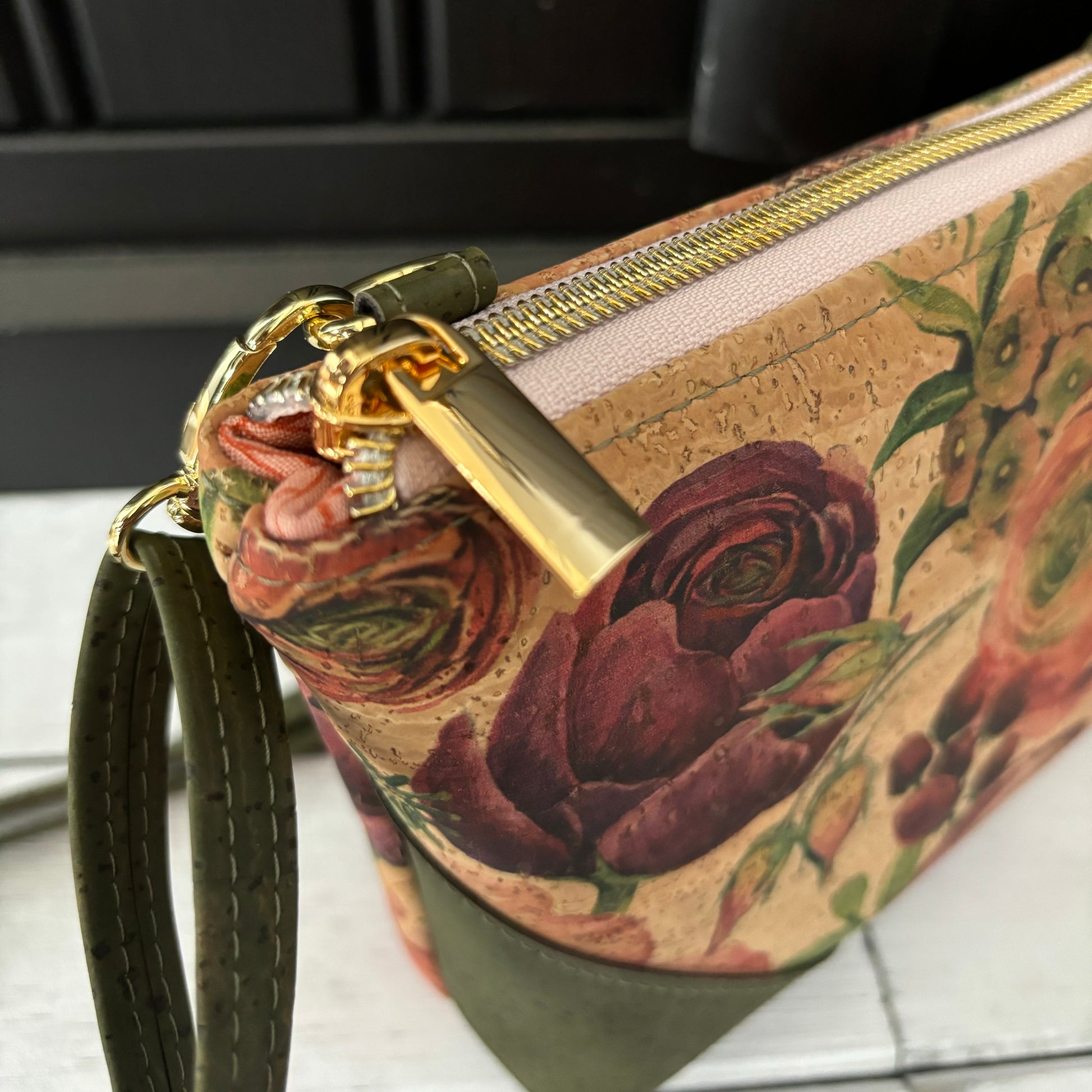 Paradigm Crossbody Bag - Roses and Army Green Cork version 2