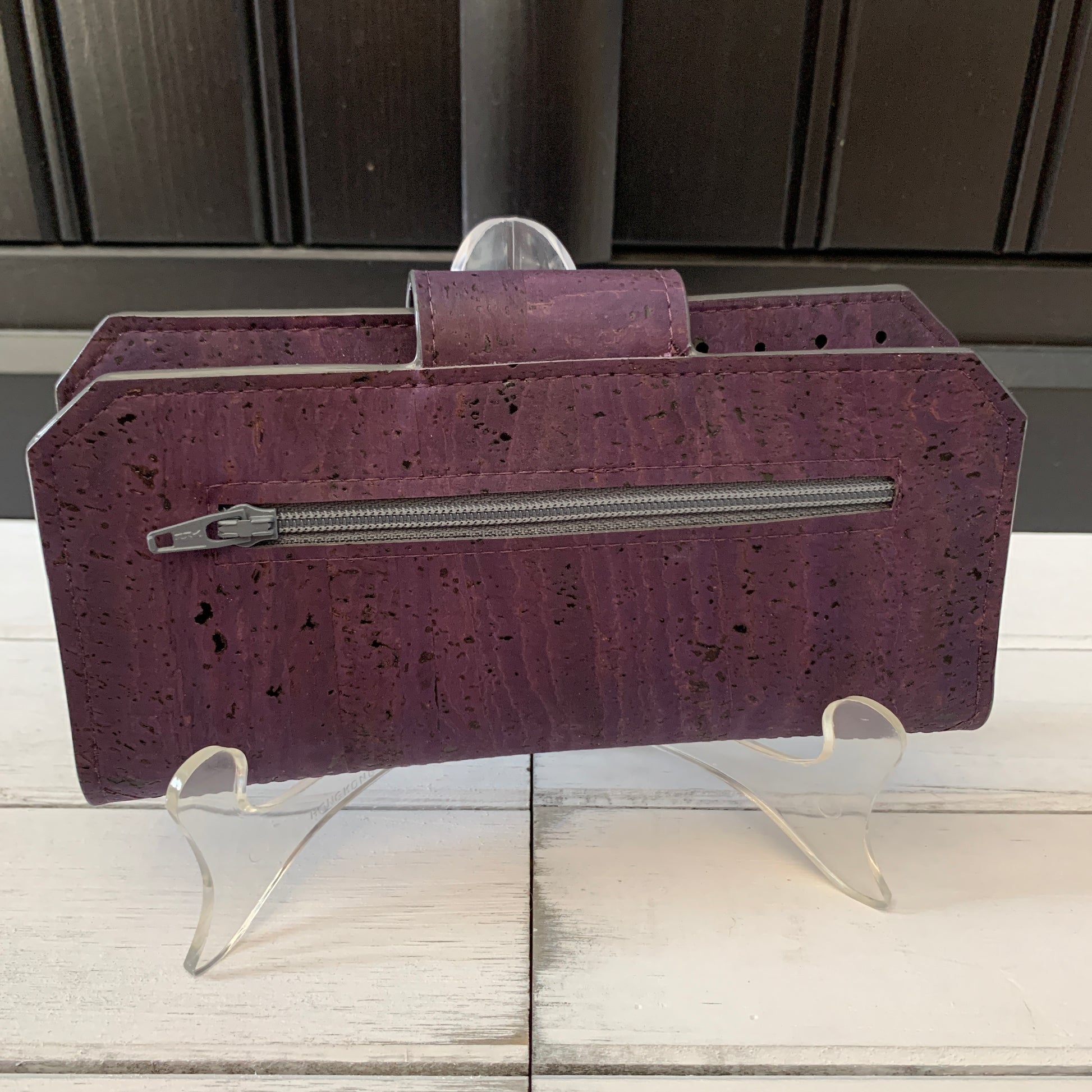 Tall Wallet - Eggplant Cork