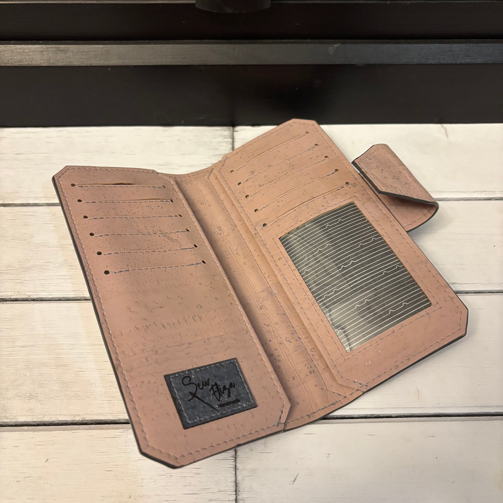 The Tall Wallet has a slim profile with room for cash, cards and coins. Made with cork and a small amount of cotton and vinyl for the ID window. Why cork? It's an eco-friendly alternative to leather and comes from a sustainable source! Spot clean only.